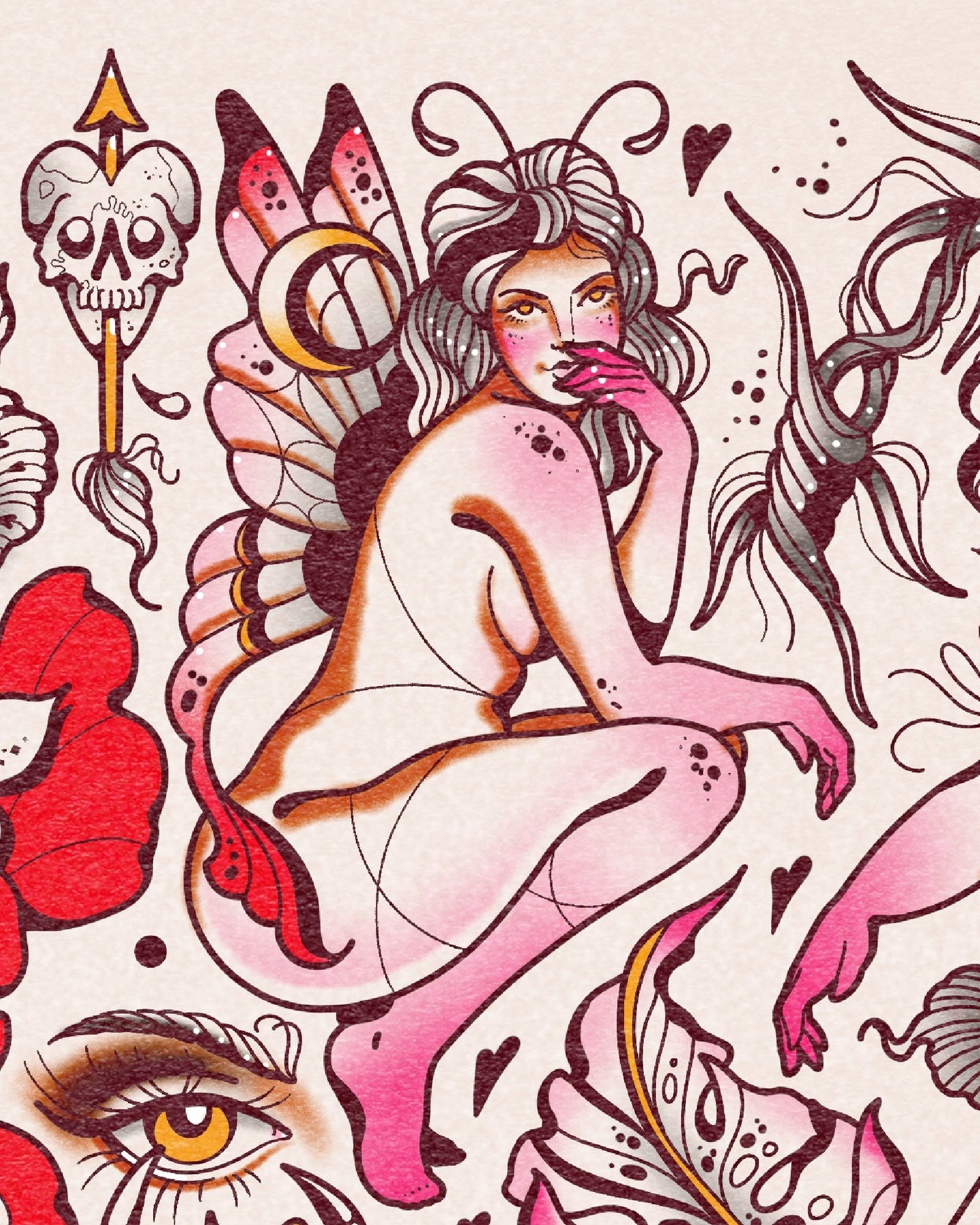 - Drawn by me, Ella; inspired by traditional tattoo flash, personal stories, and everyday magic.